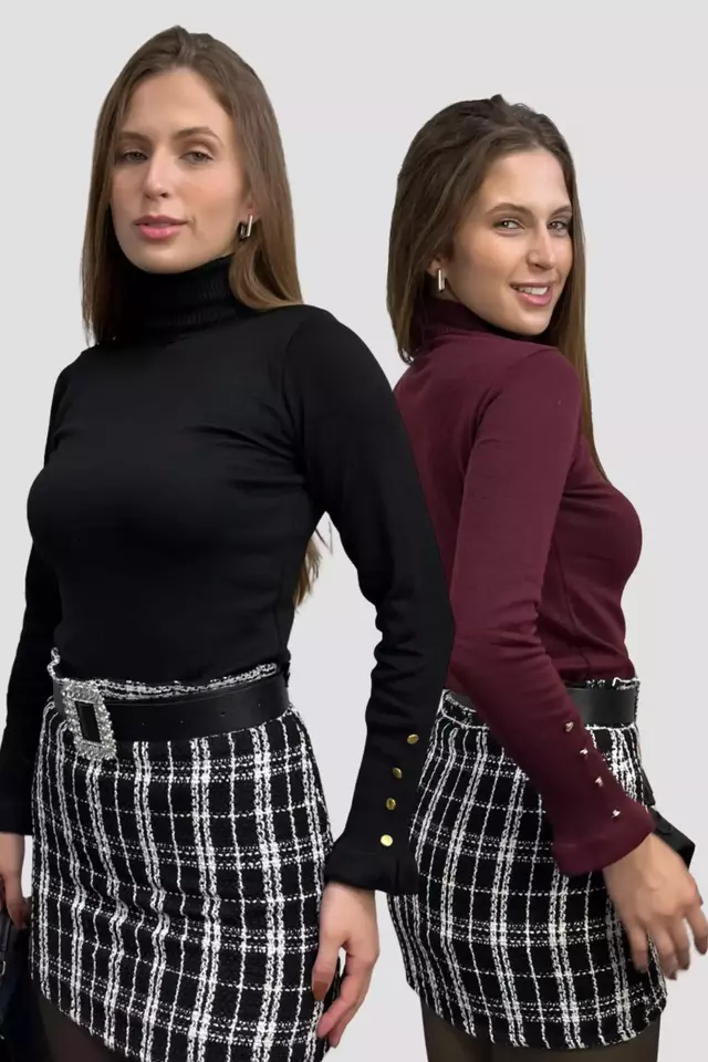 - Blusa de Tricô Gola Alta om Botão na Manga Feita com um Tecido de Alta Qualidade;