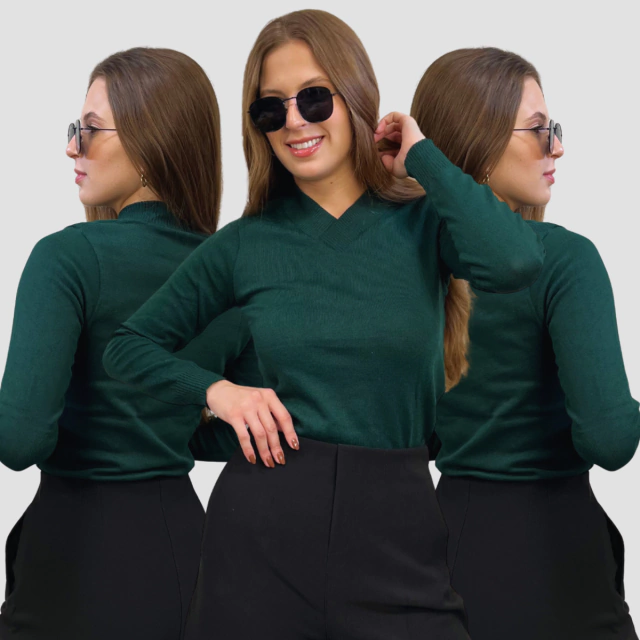 - Com sua Gola V que realça o busto e se molda perfeitamente ao corpo, tornando-a uma opção bem apreciada em diversas ocasiões;